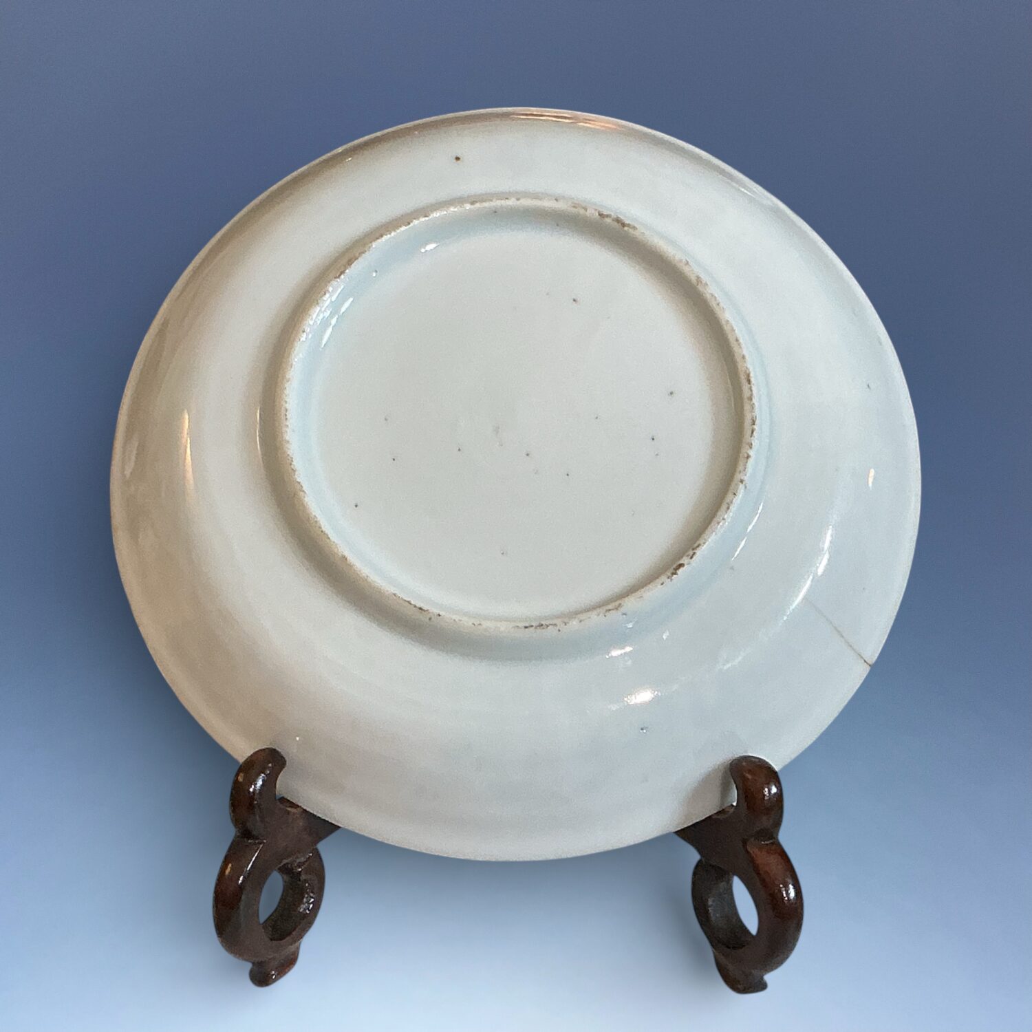 Condition : Short hairline to saucer, firing fault to rims, tea bowl has slight fritting and a tiny hairline. Some stacking wear to saucer. No restoration.
