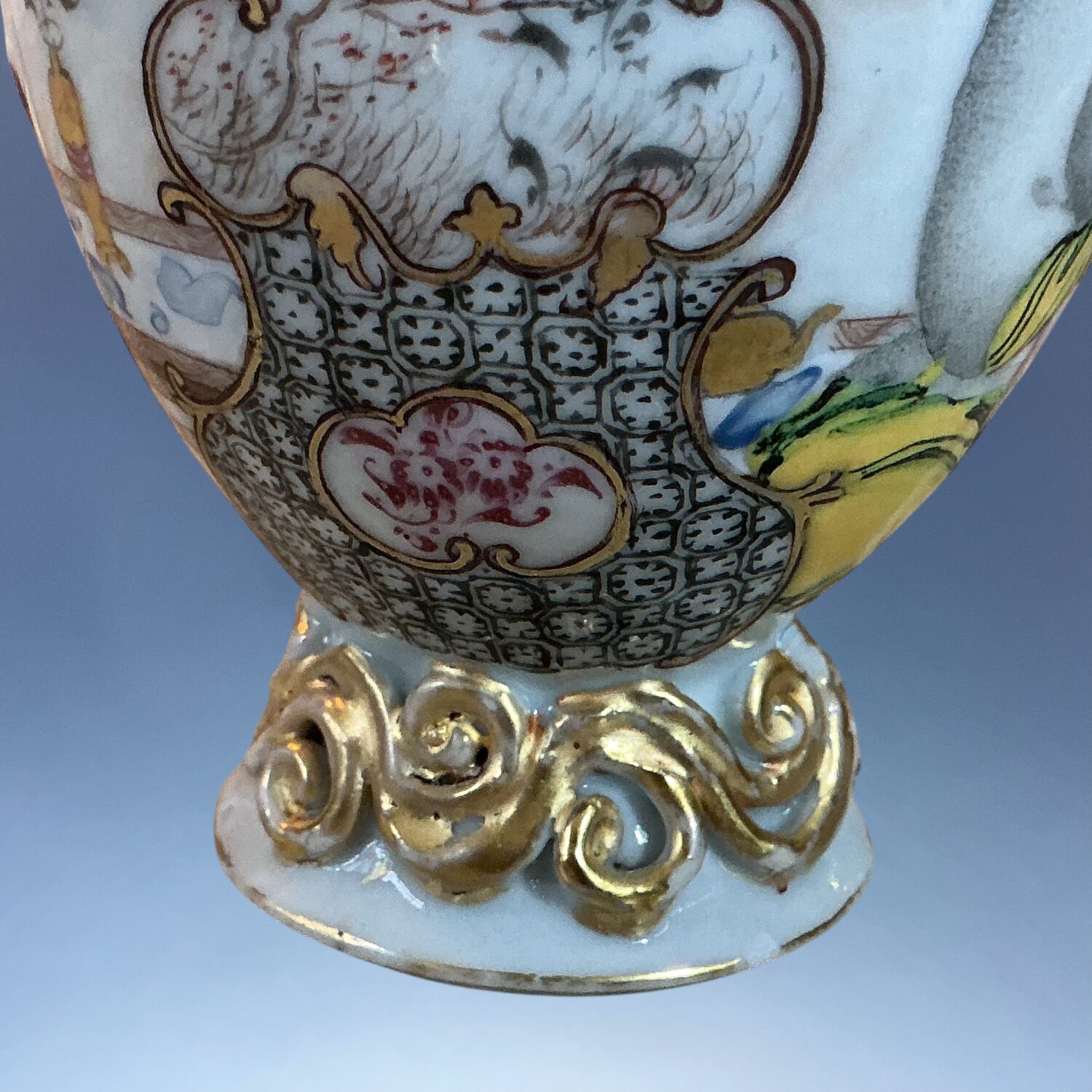 Condition : Small chips & fritting to neck, 2 chips to edge of base, small chips/fritting to gilt scrolling (see photos) No restoration.