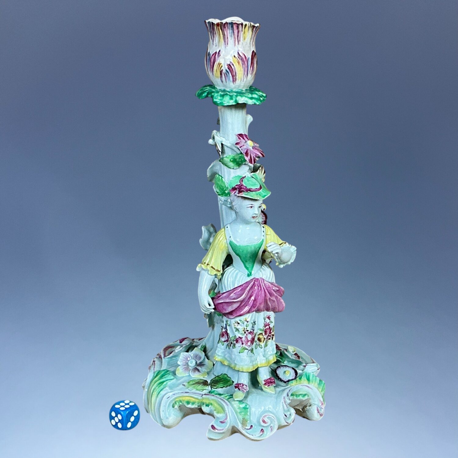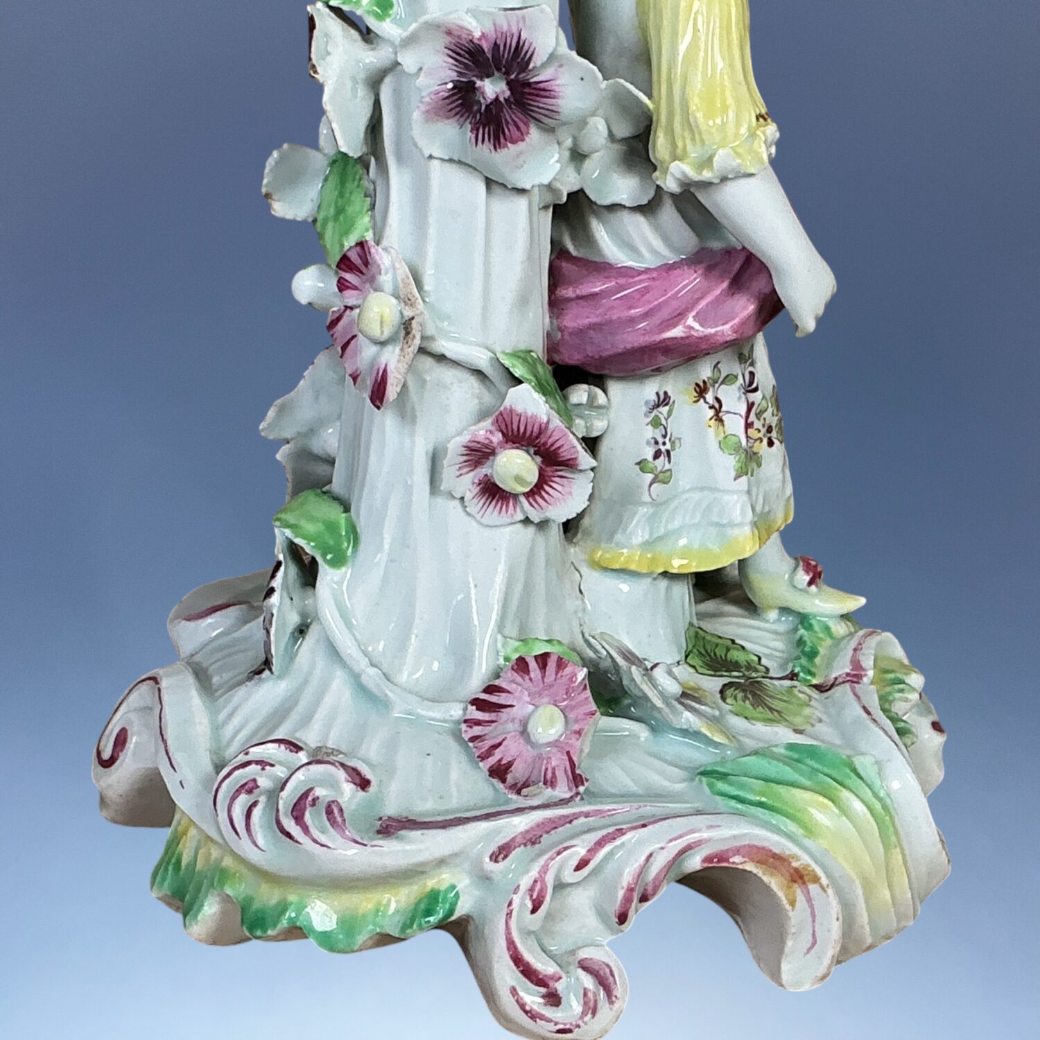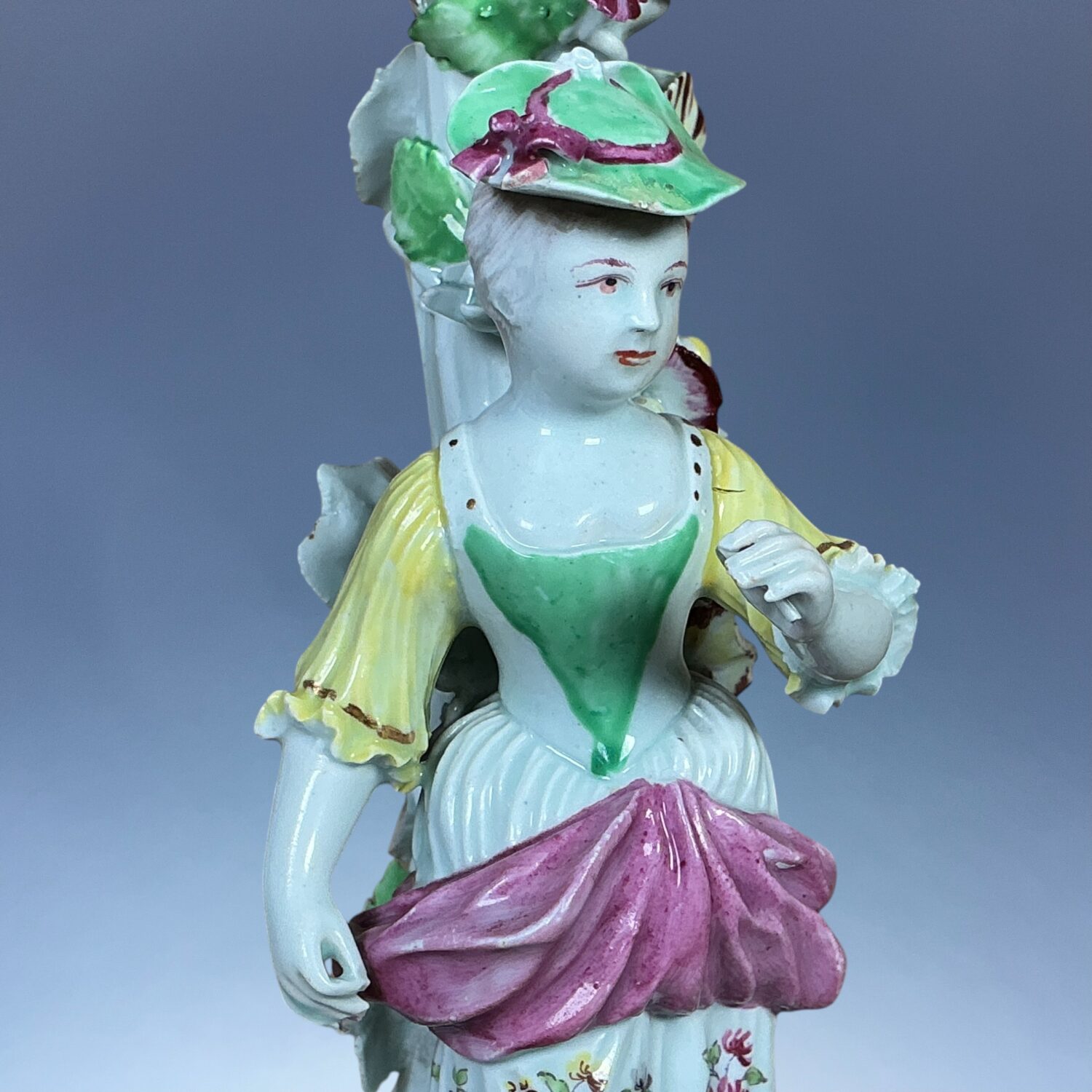 AD comment : A good example of an early Derby figure, its a shame about the sconce but it’s better than no sconce at all.