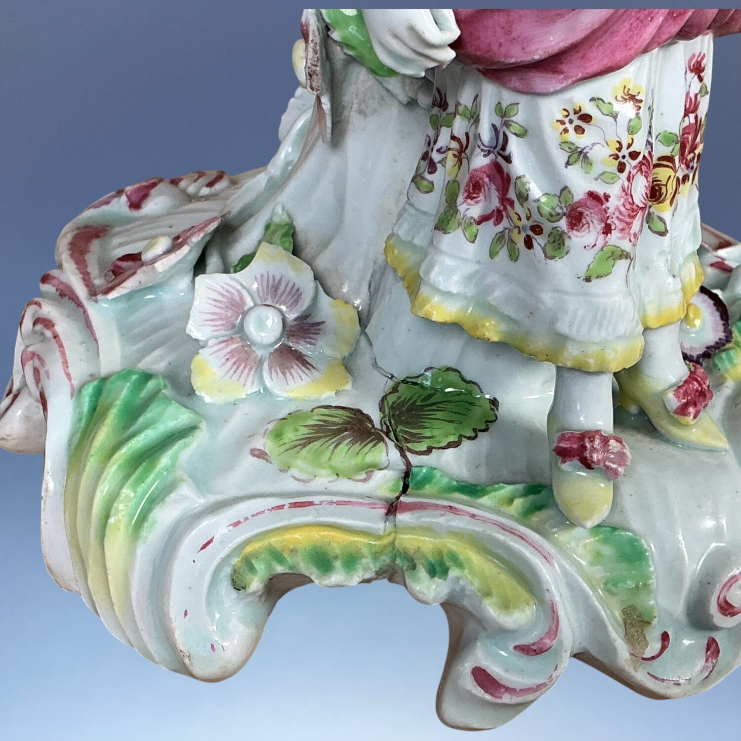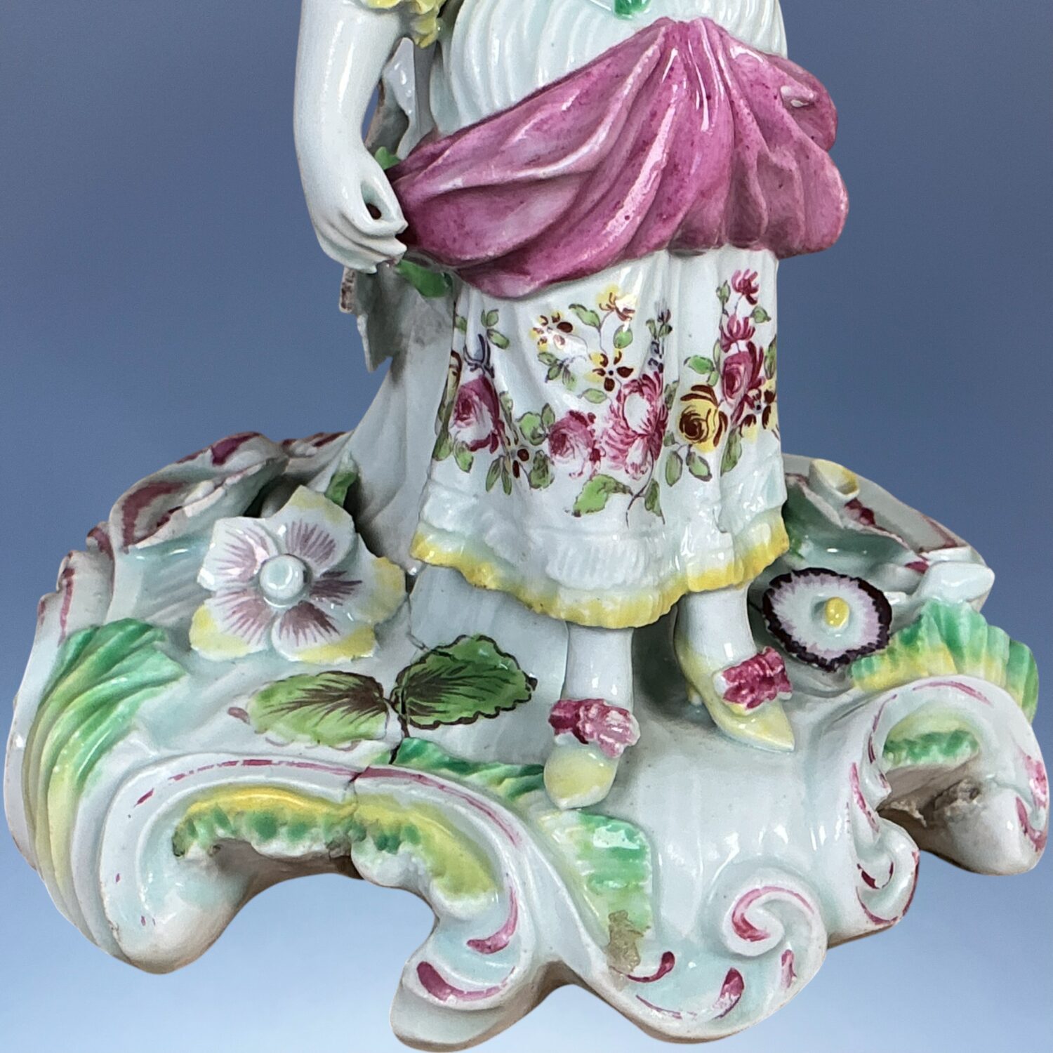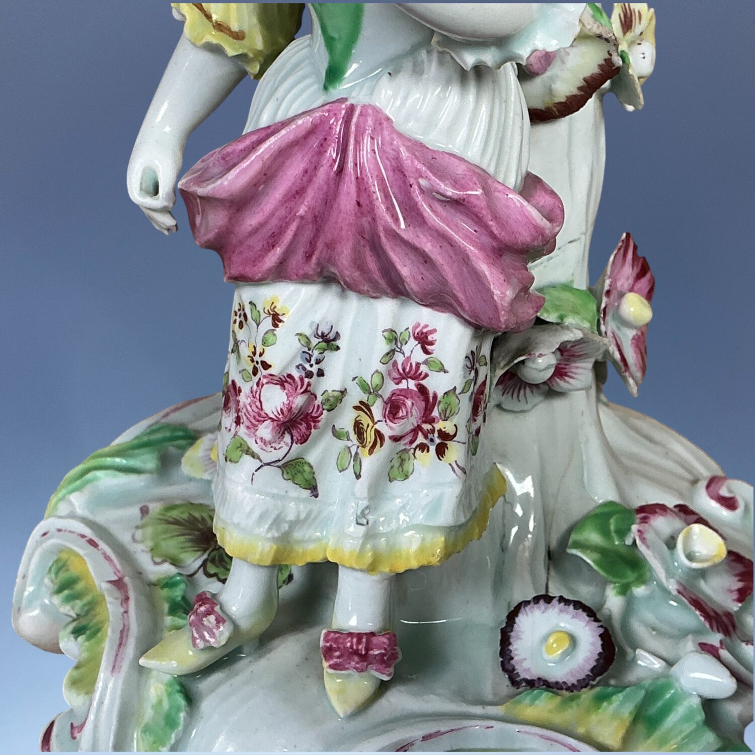 AD comment : A good example of an early Derby figure, its a shame about the sconce but it’s better than no sconce at all.