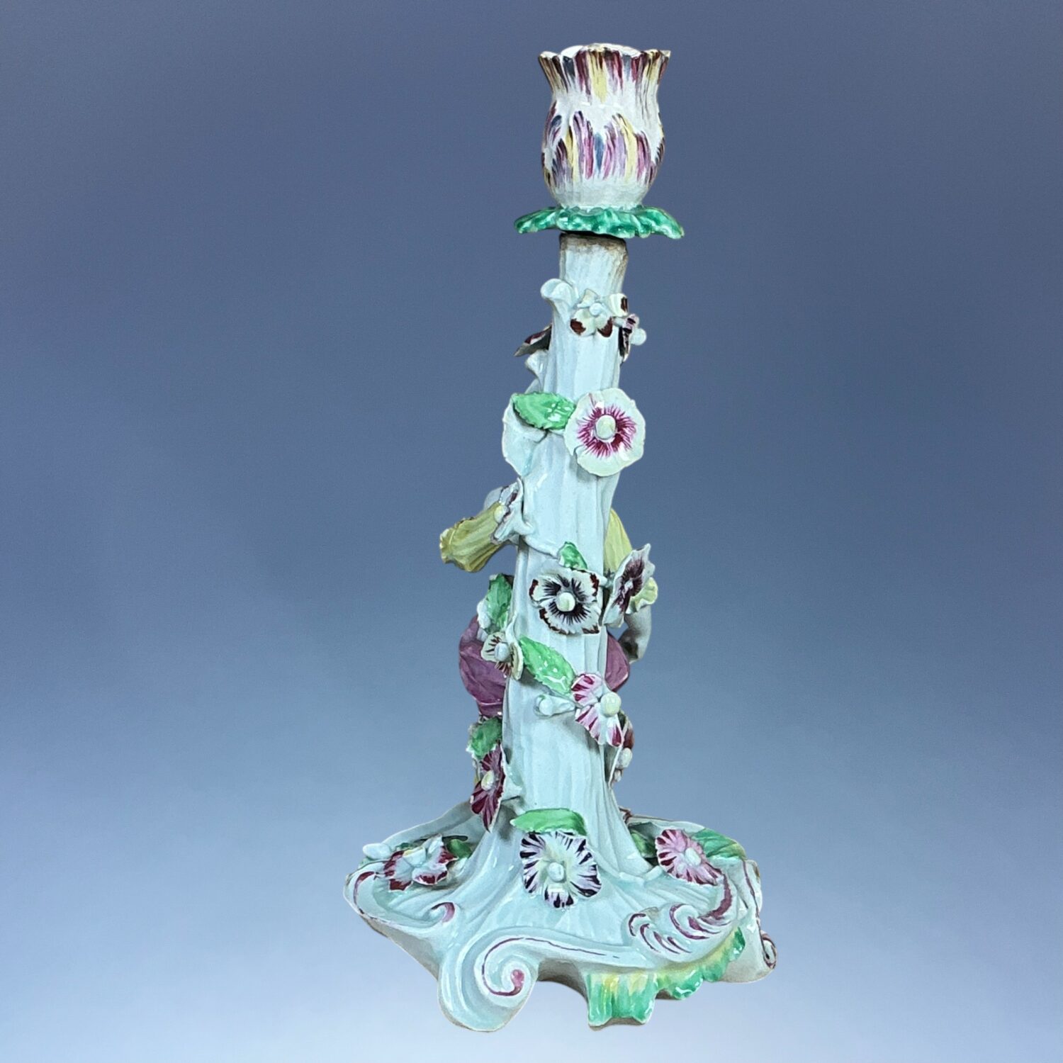 Fitted with a tulip shaped sconce which is a later copy of a Bow sconce.