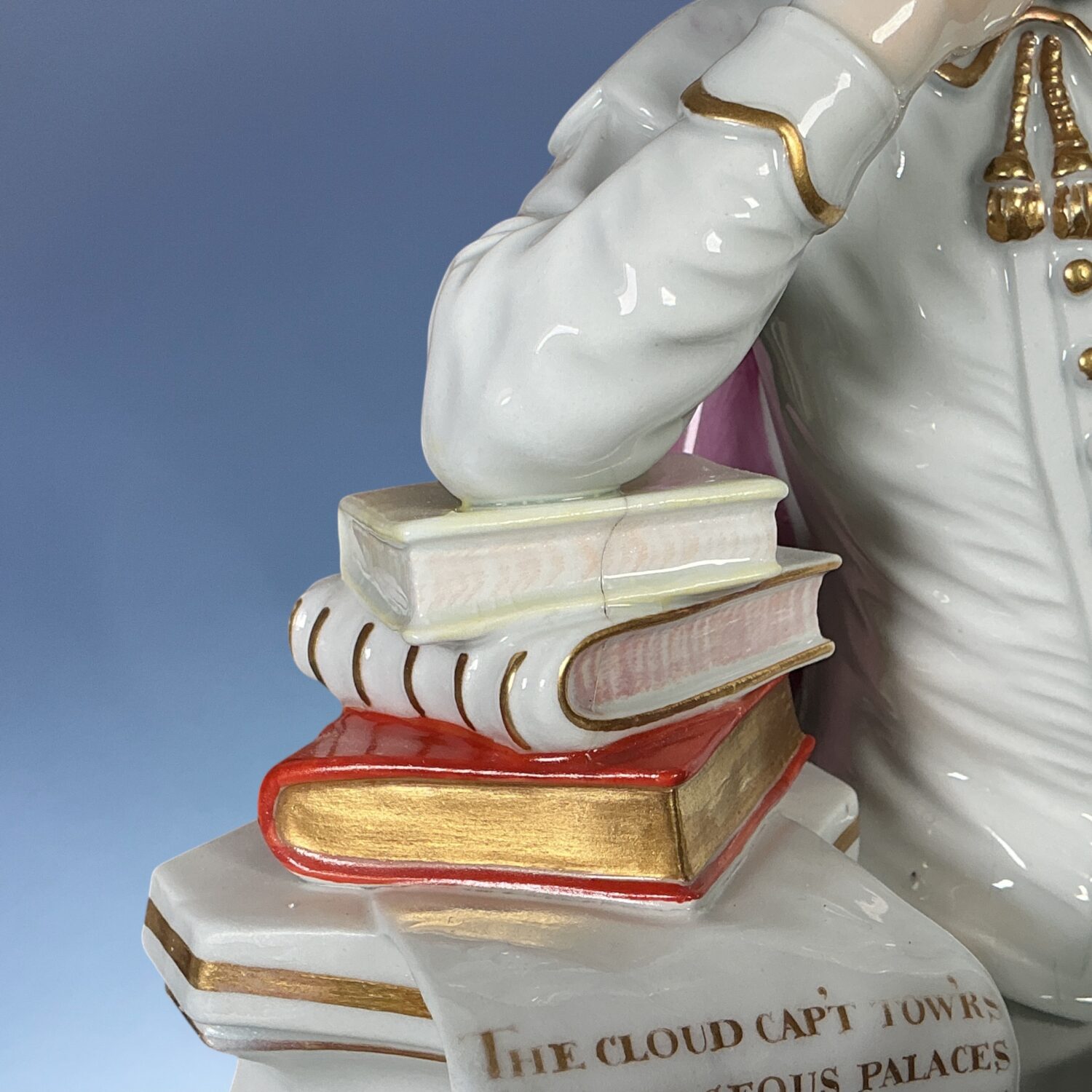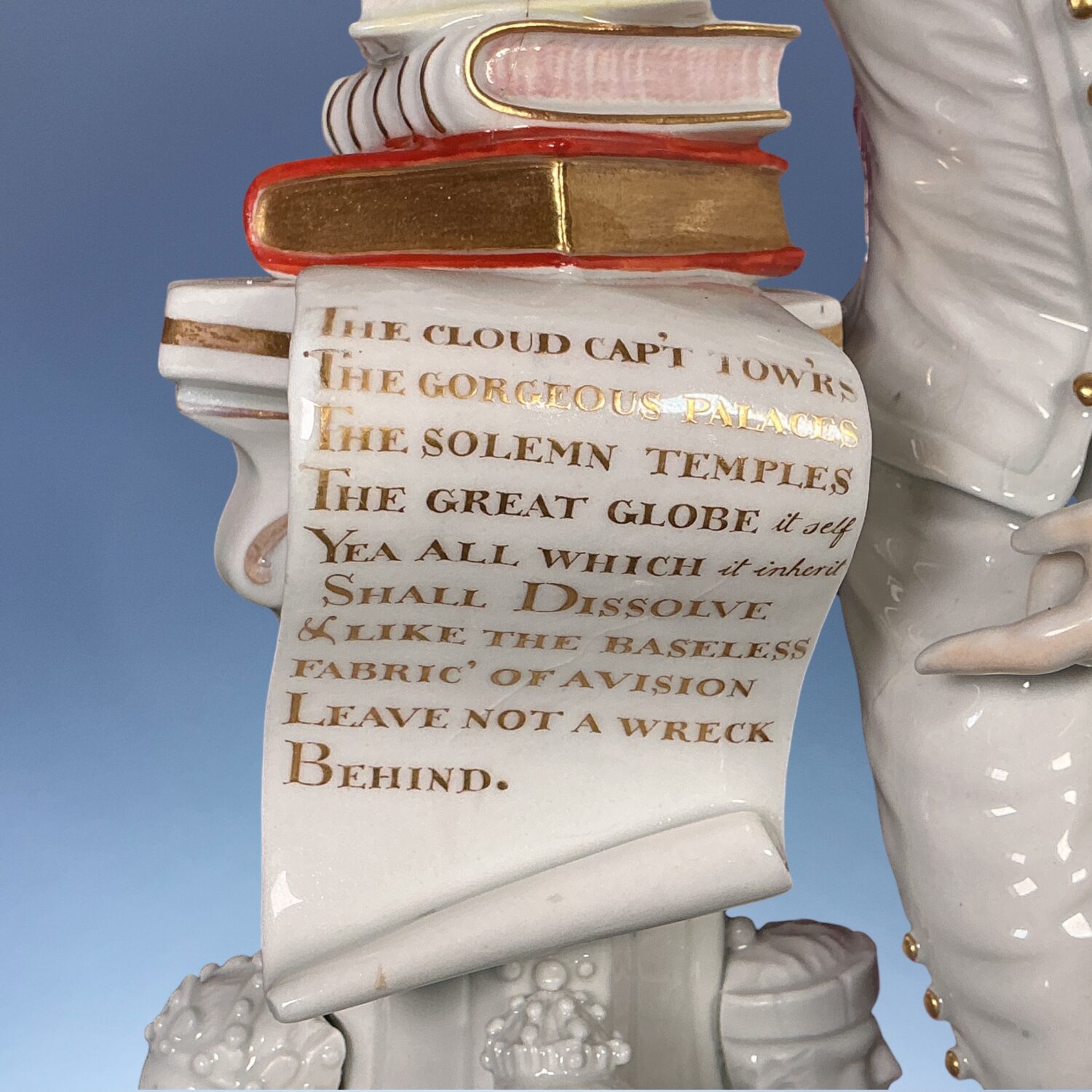 A good example of this well known figure, modelled after the famous statue of William Shakespeare in Westminster Abbey’s Poets’ Corner, erected in 1740-41, a famous monument designed by William Kent and sculpted by Peter Scheemakers