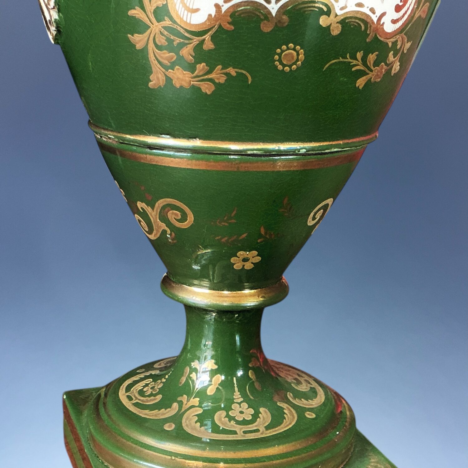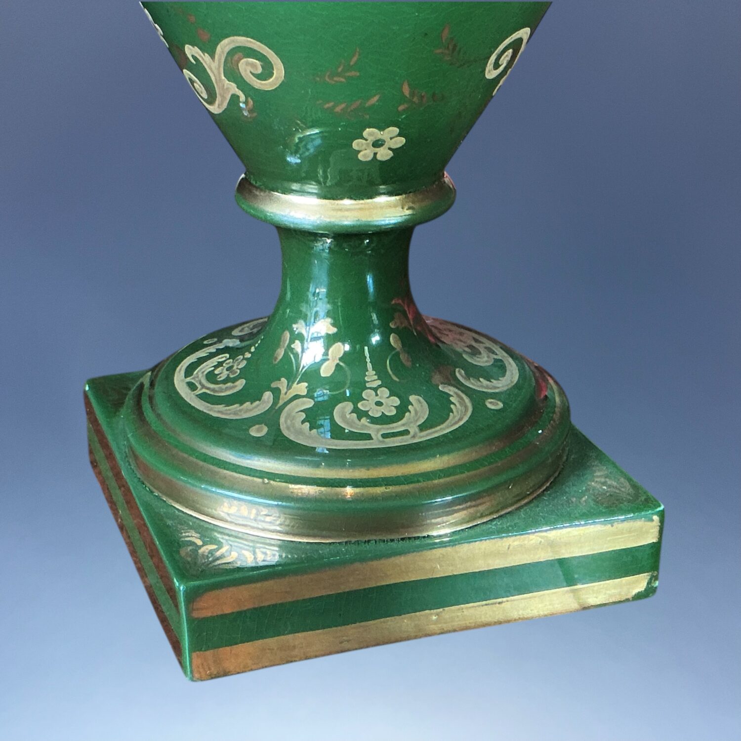 Condition : Good overall condition, there is a very faint crack to the edge of the socle (see photos) a little wear to gilding and very slight discolouration to the white ground behind the flowers.