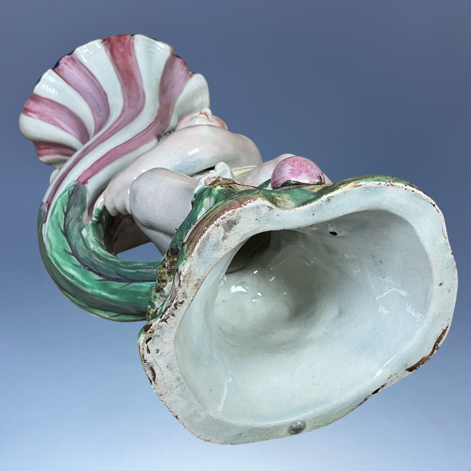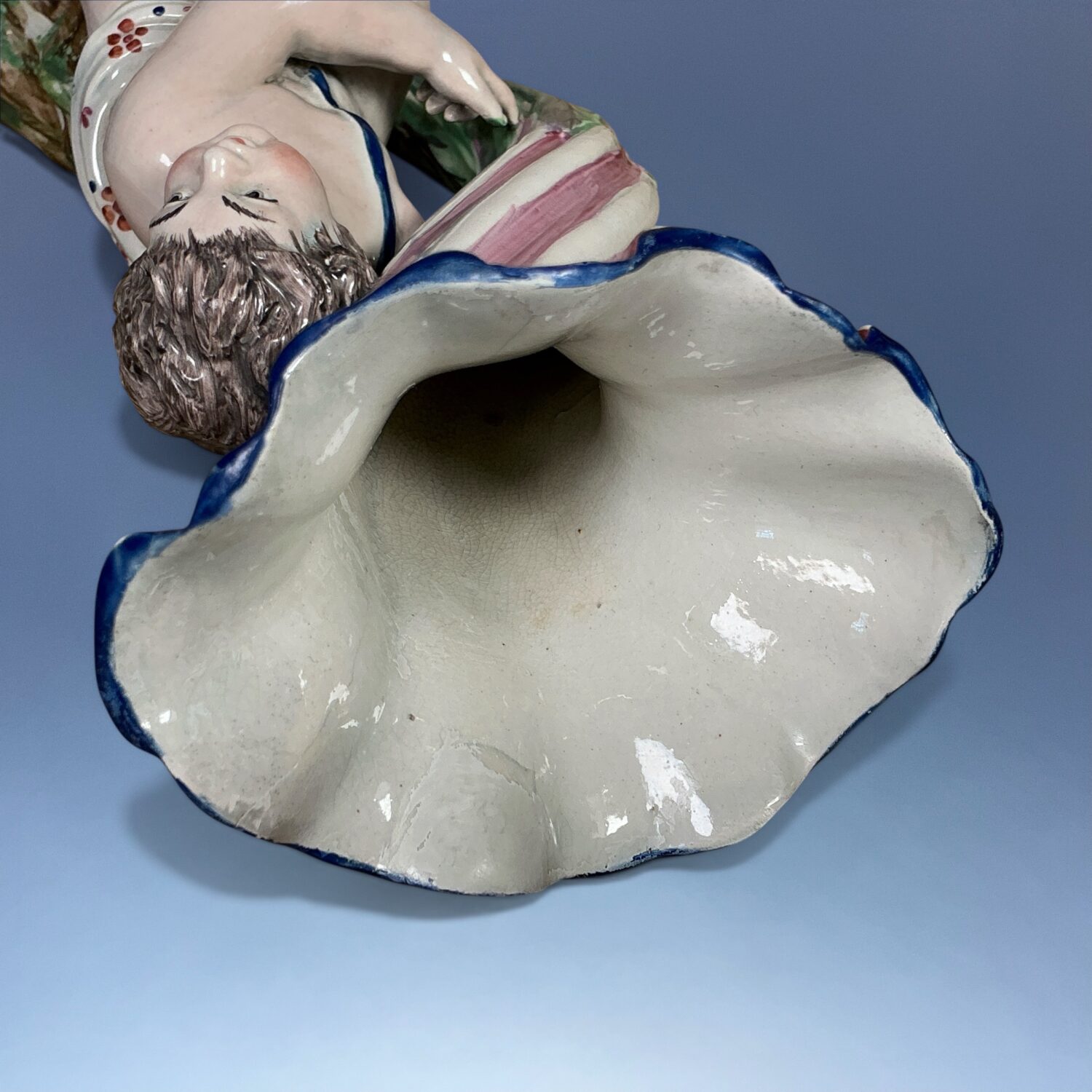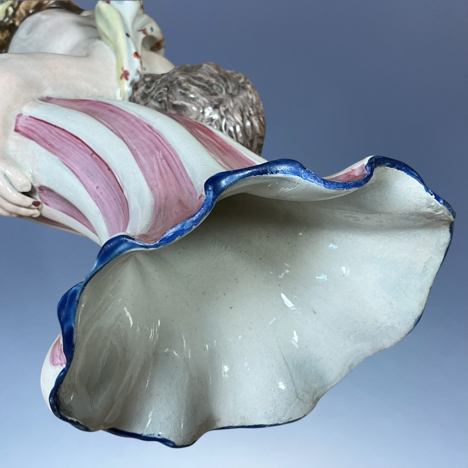 Pearlware decorated with overglaze enamel colours.