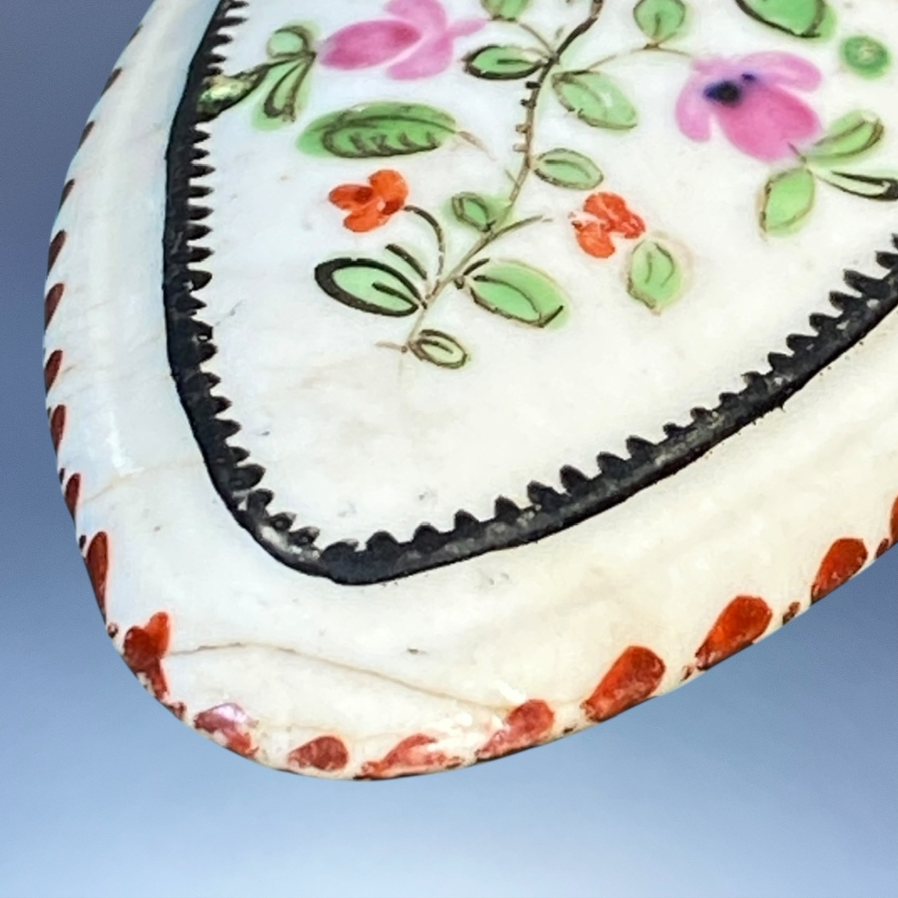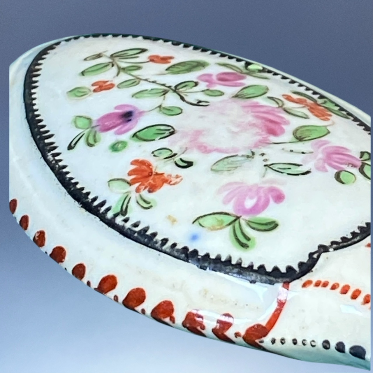 Early 19th century English porcelain oval scent bottle with hand painted floral decoration.