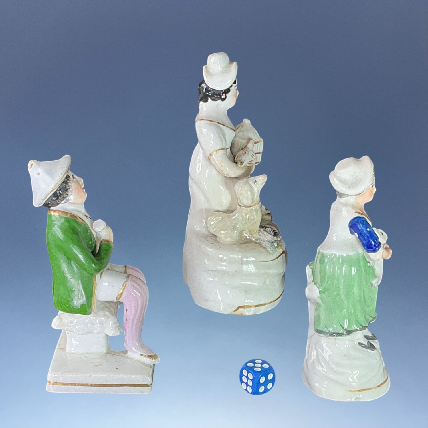 Group of three mid 19th century Staffordshire porcelain figures: