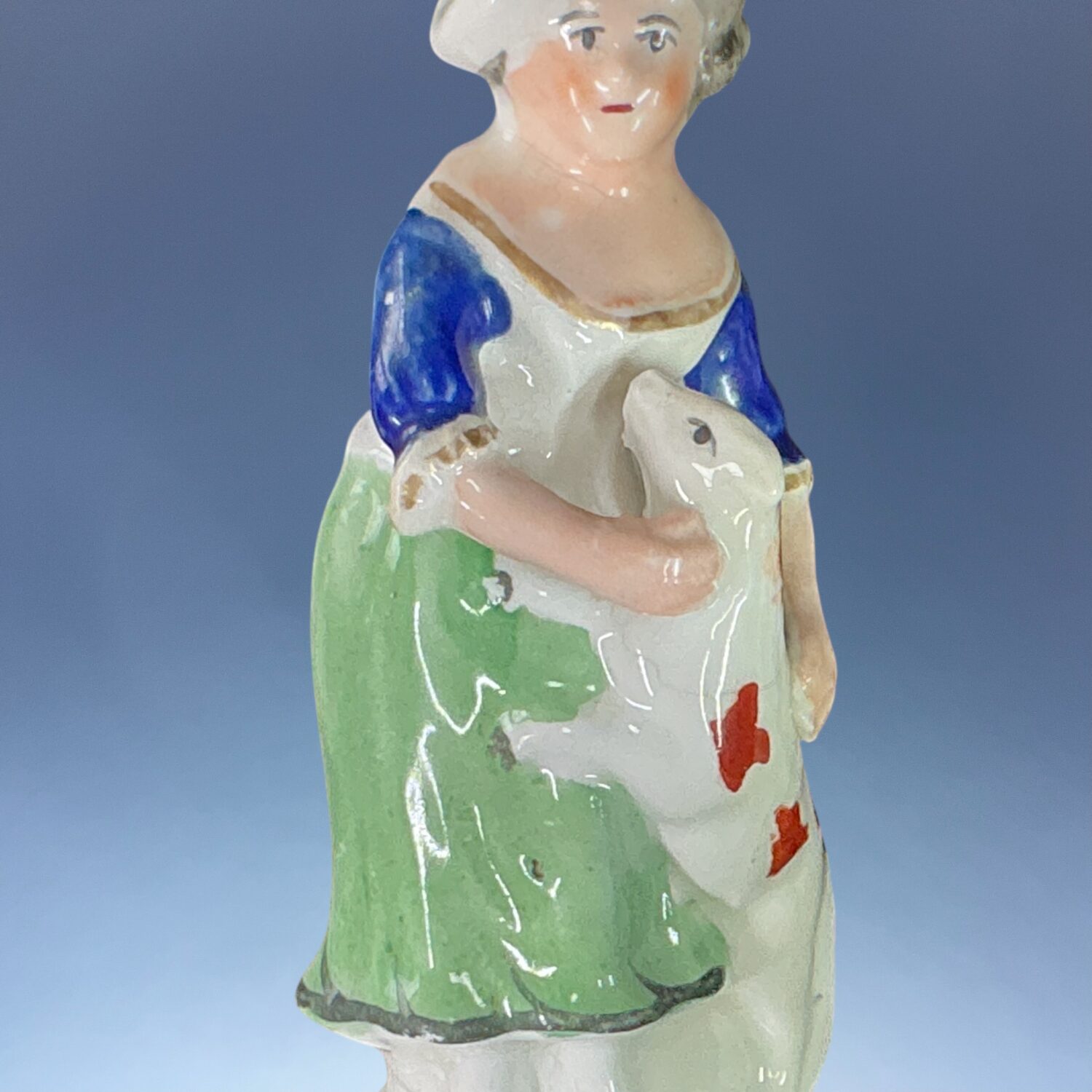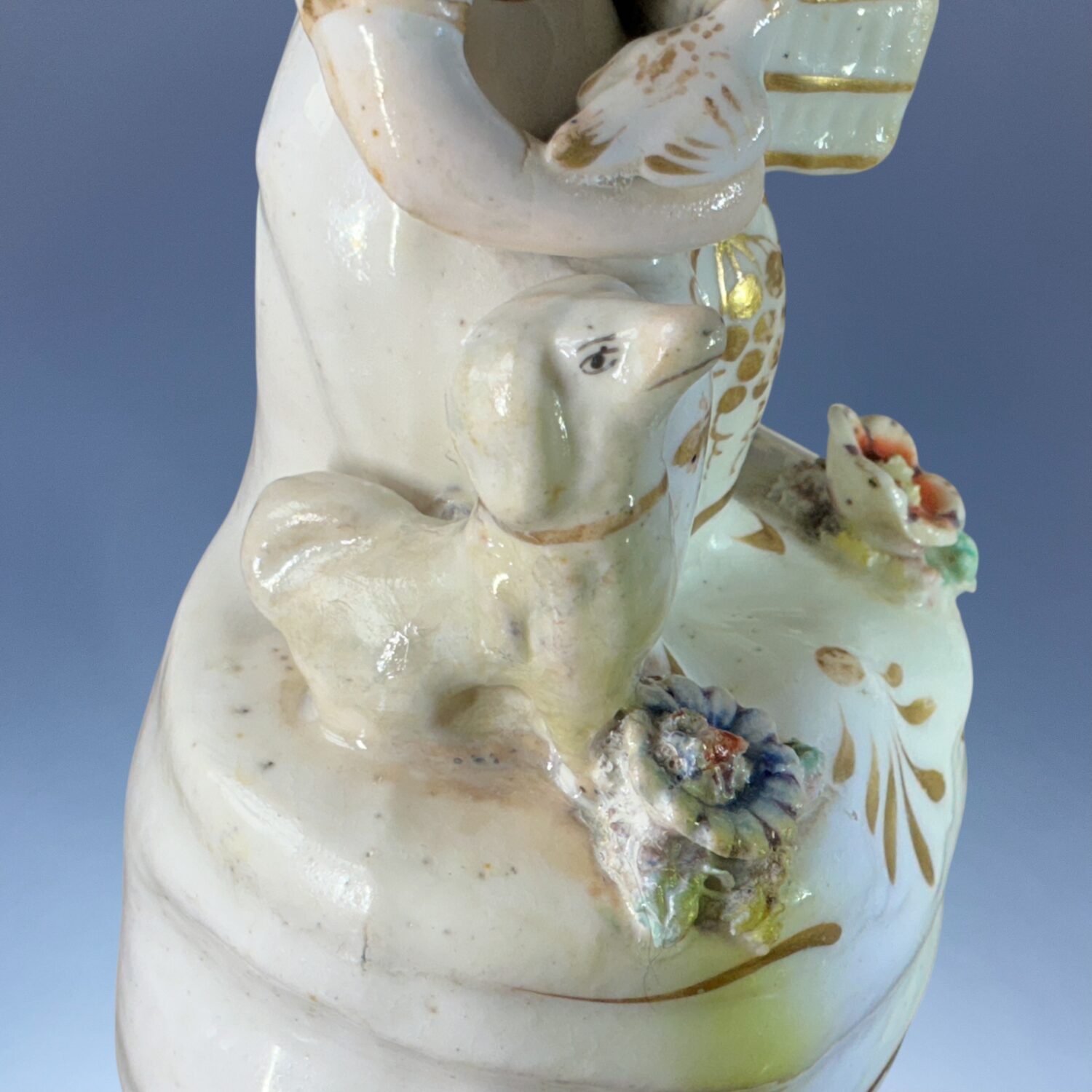 Girl with sheep: Cracks to base.