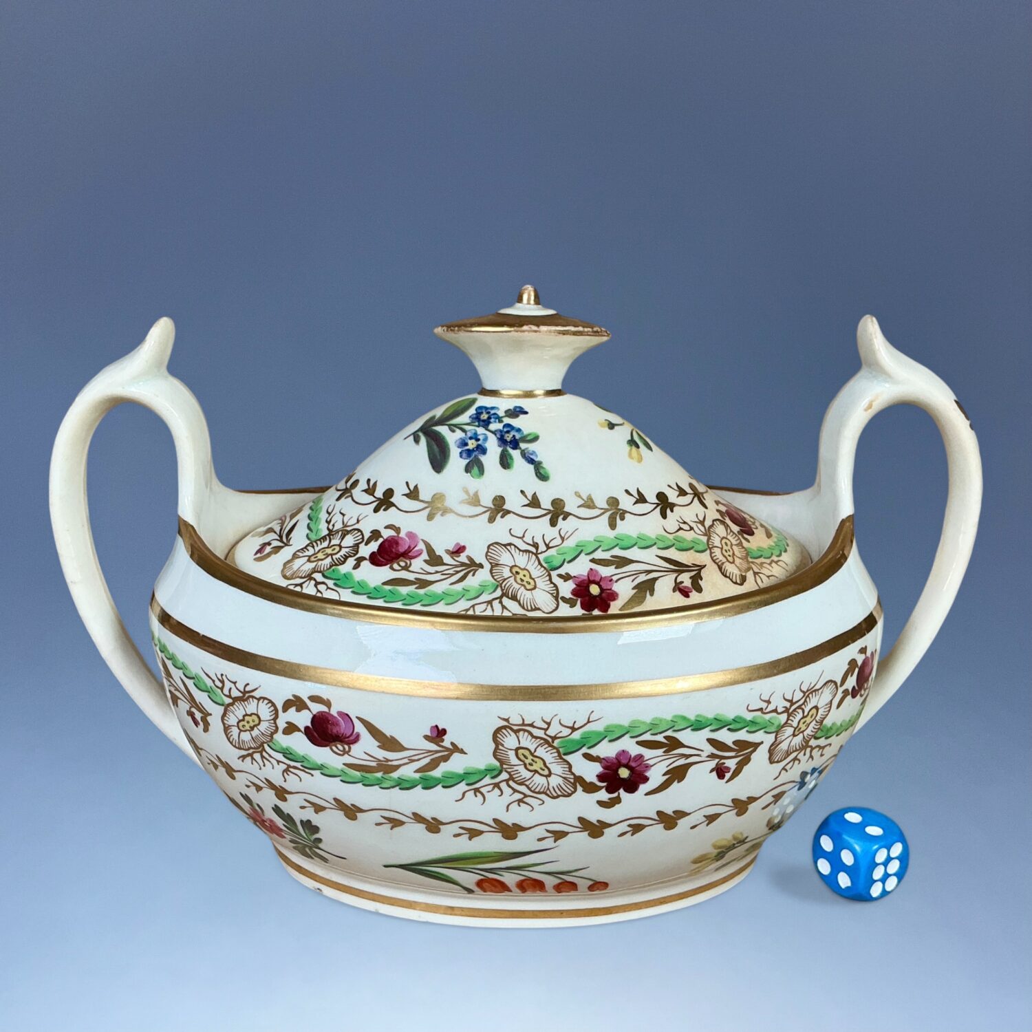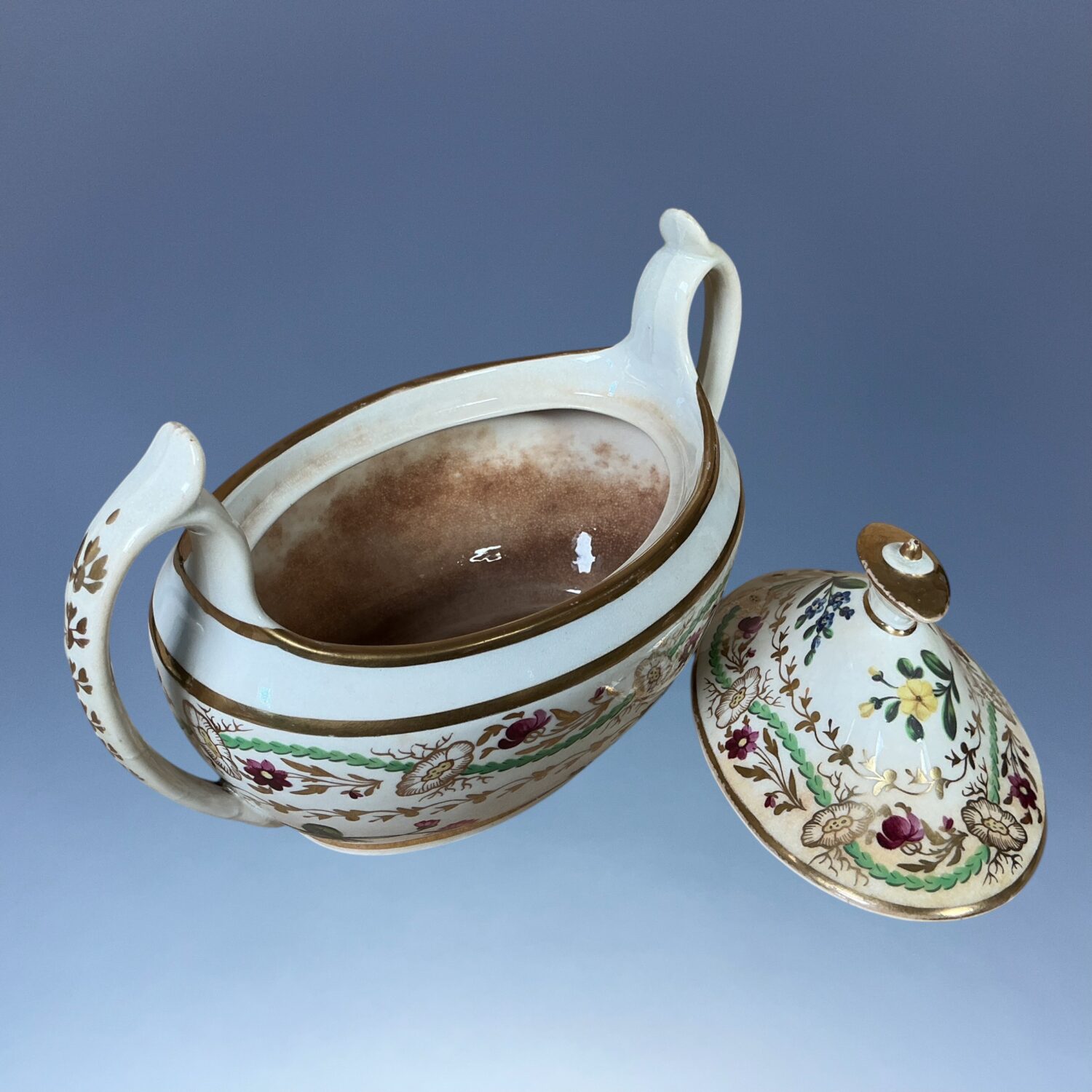 Condition : Extensive staining to interior and to a lesser extent on the exterior (see photos) Slight wear to gilding. No damage or restoration.
