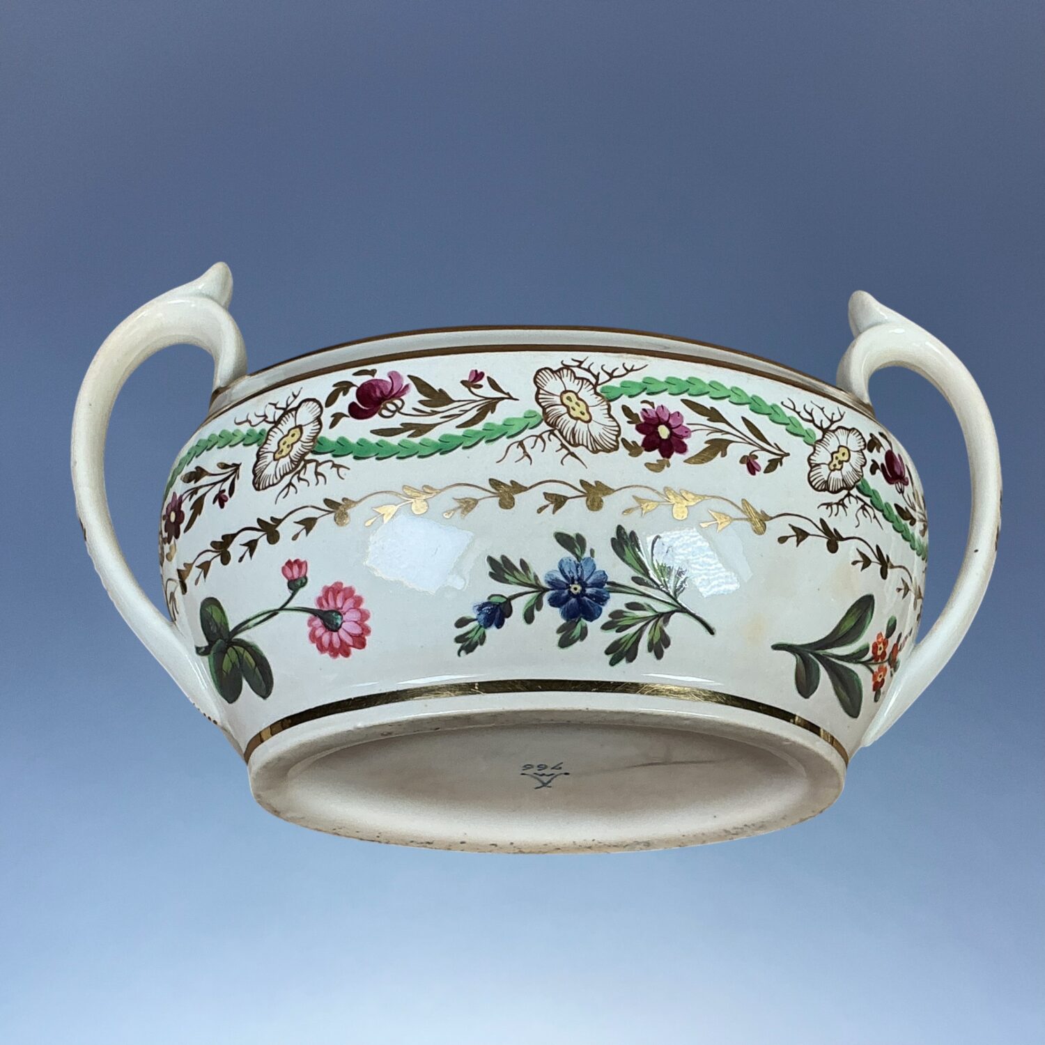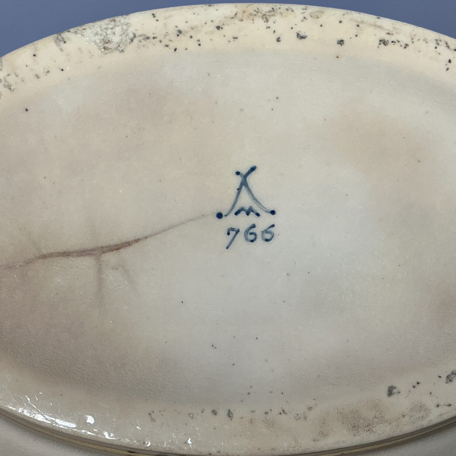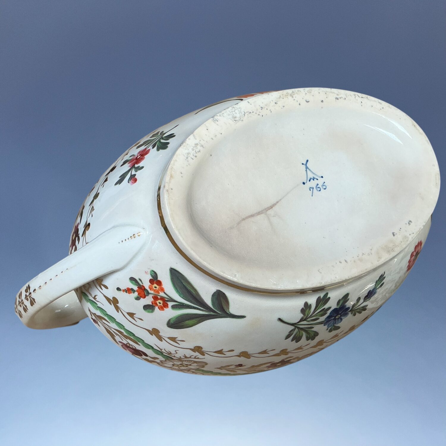Sevres style mark and pattern number ‘766’ painted in blue enamel.