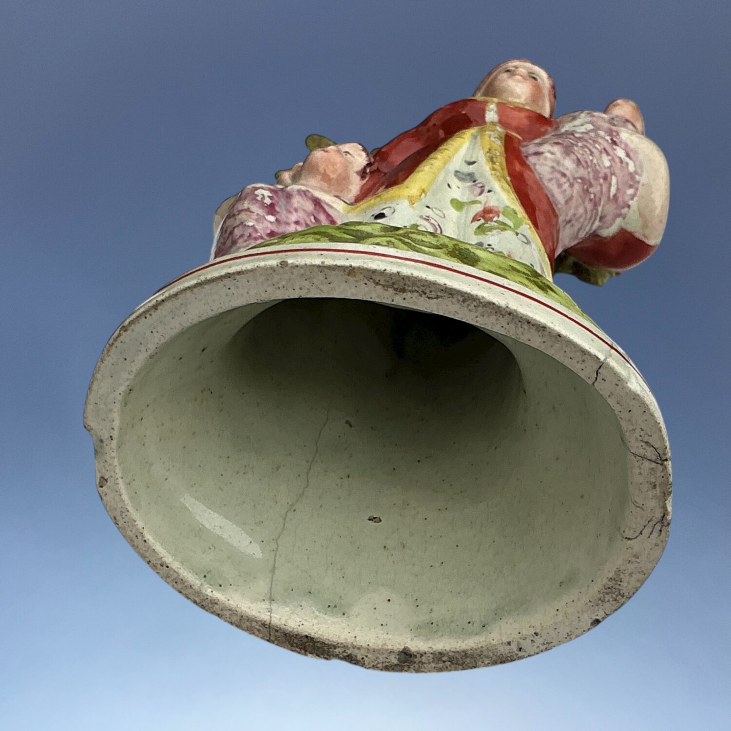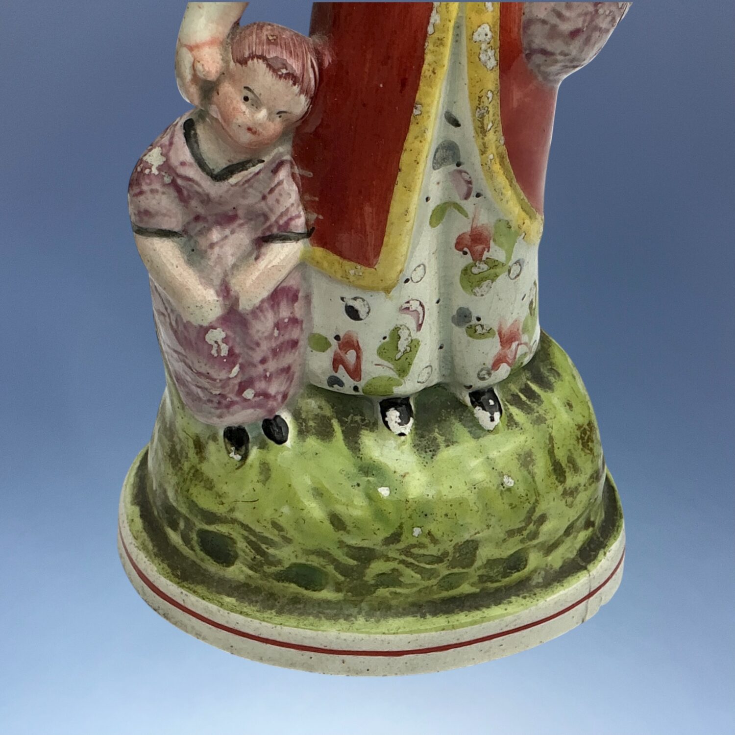 Pearlware decorated with overglaze enamel colours.