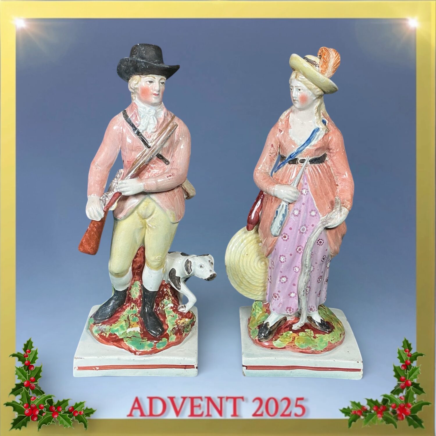 The subject of today’s update are a Pair of Early Staffordshire Pottery Figures ‘Sportsman & Companion’