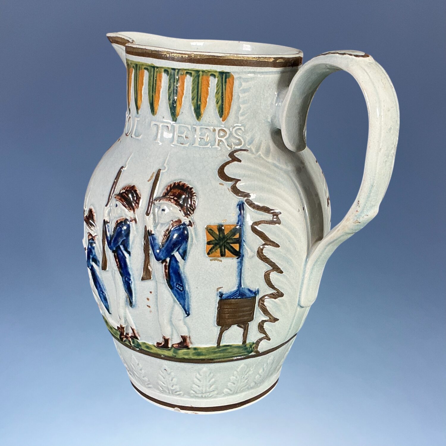 Early Pratt Ware Pottery Jug – Loyal Volunteers – c1795