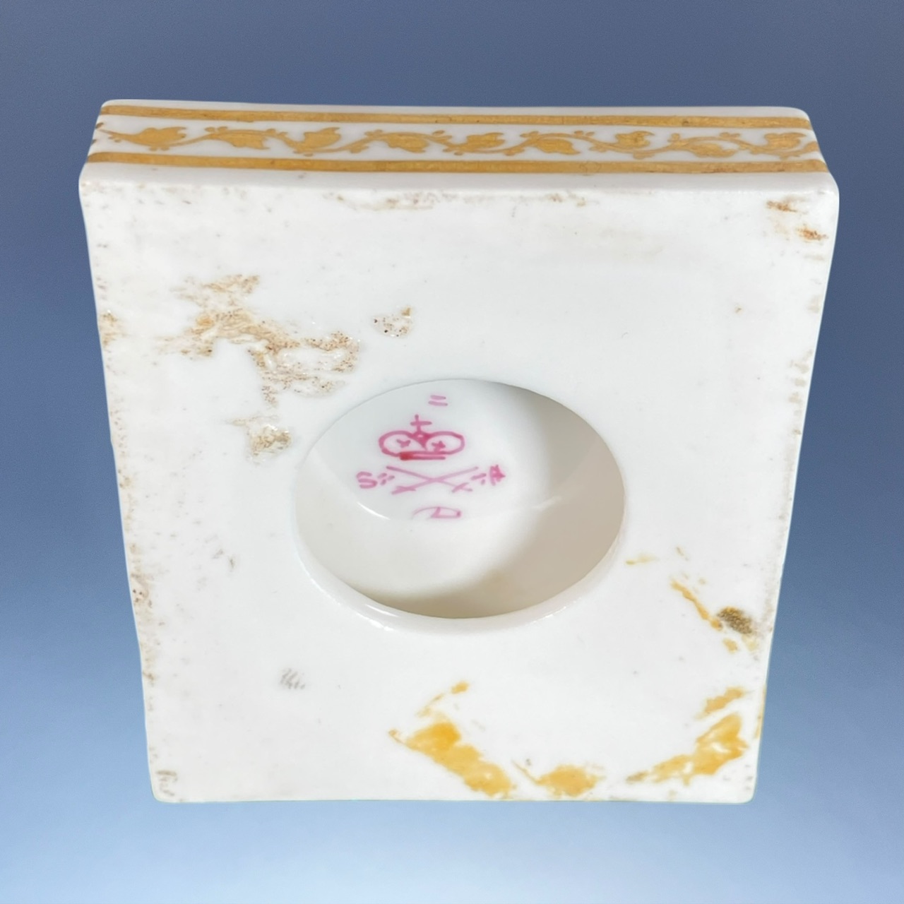 Crown & Crossed Swords & ‘D’ marks painted in puce.