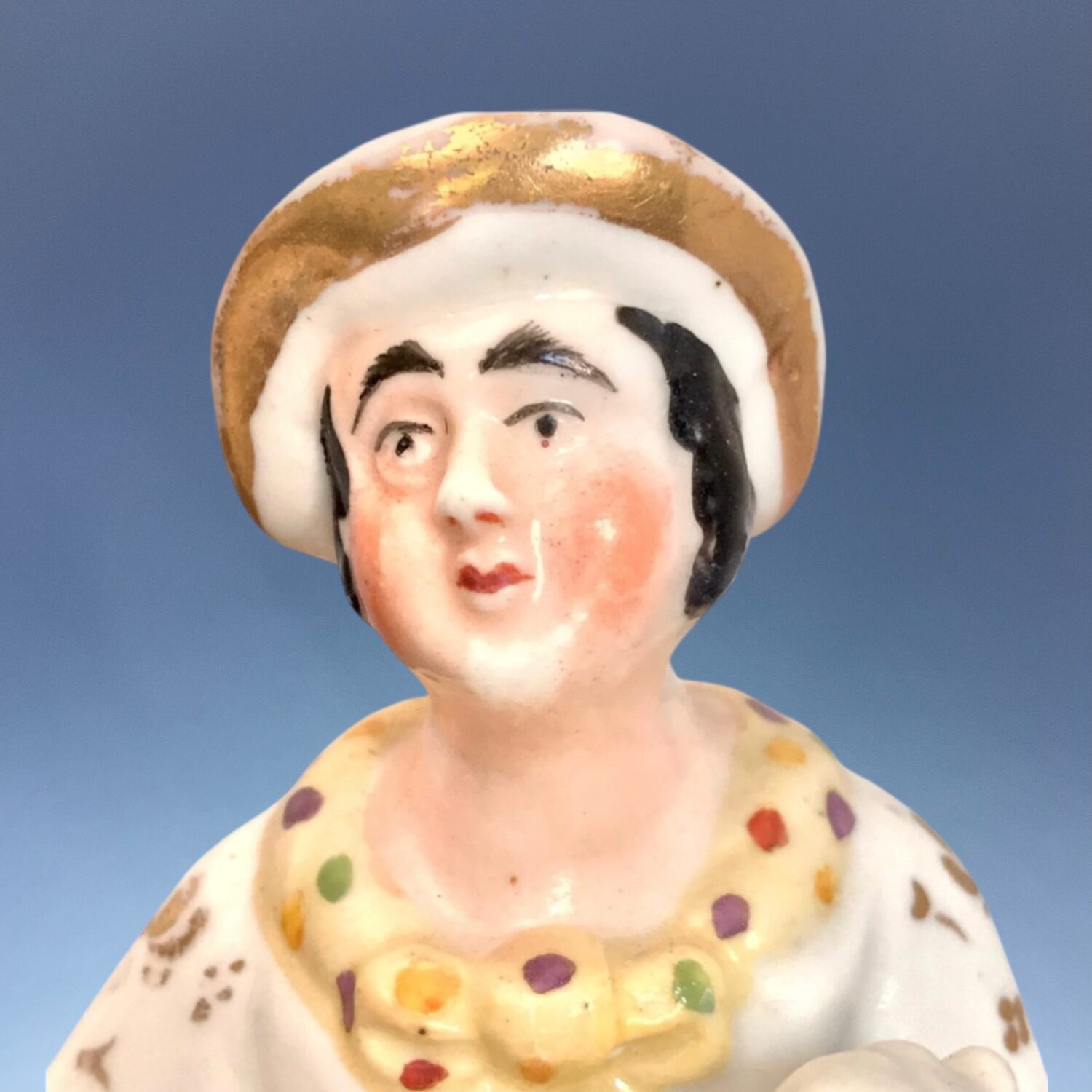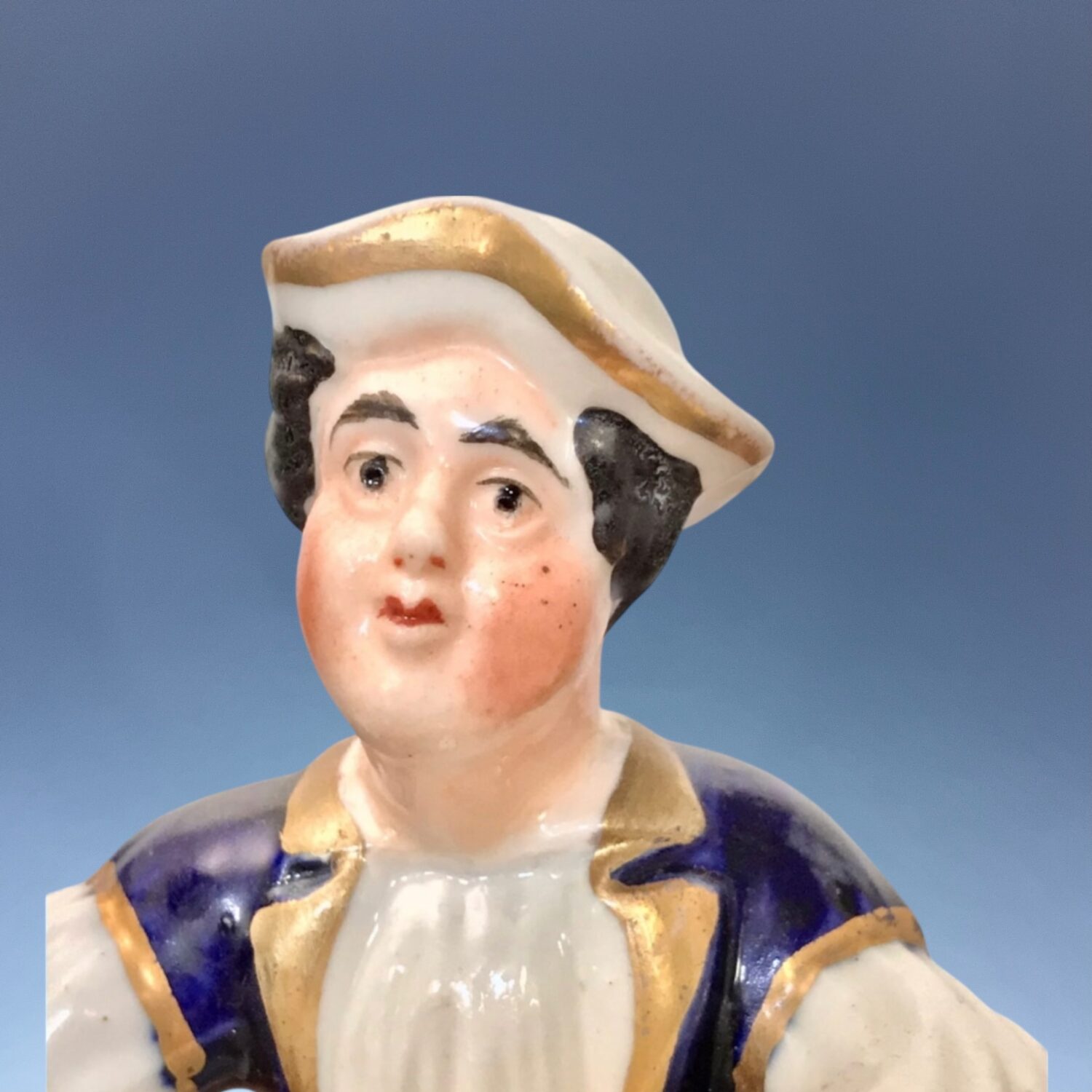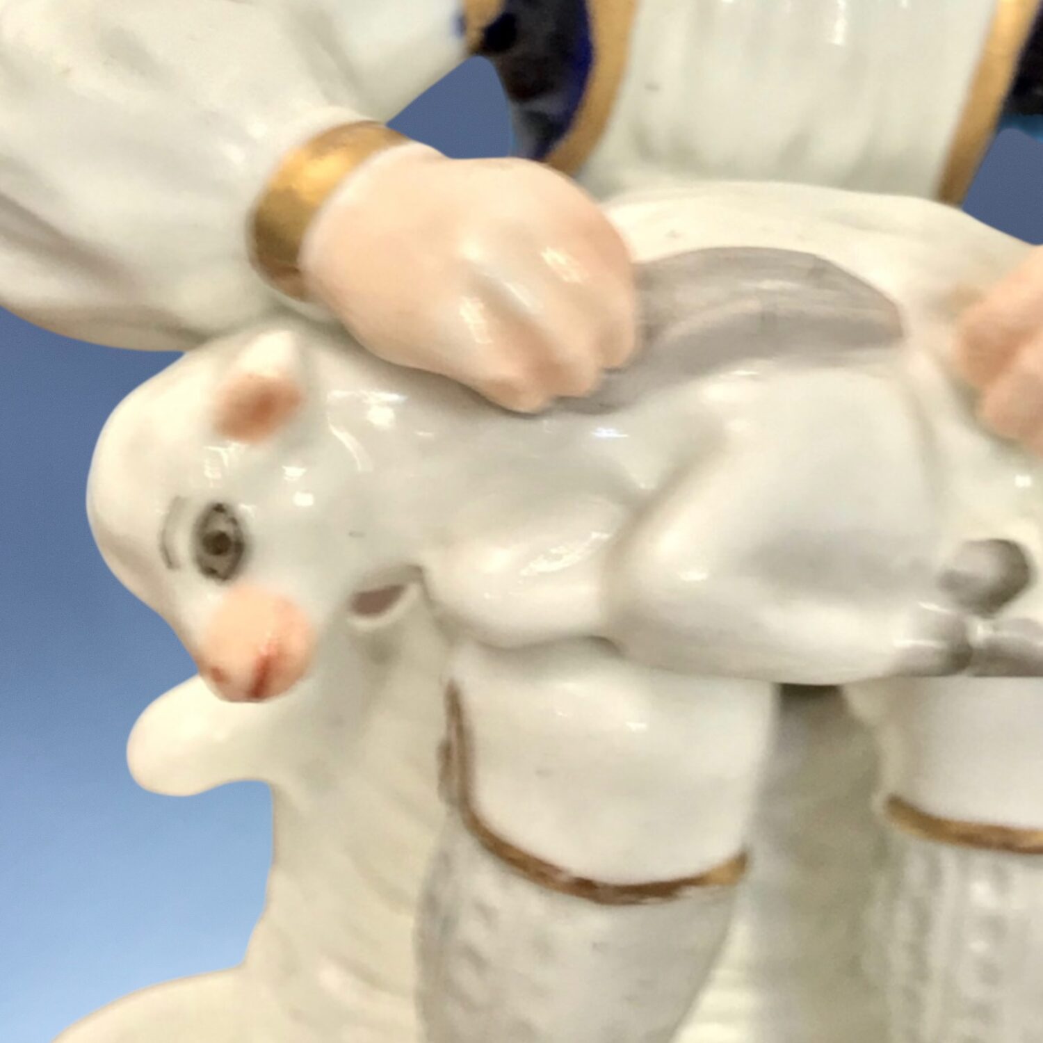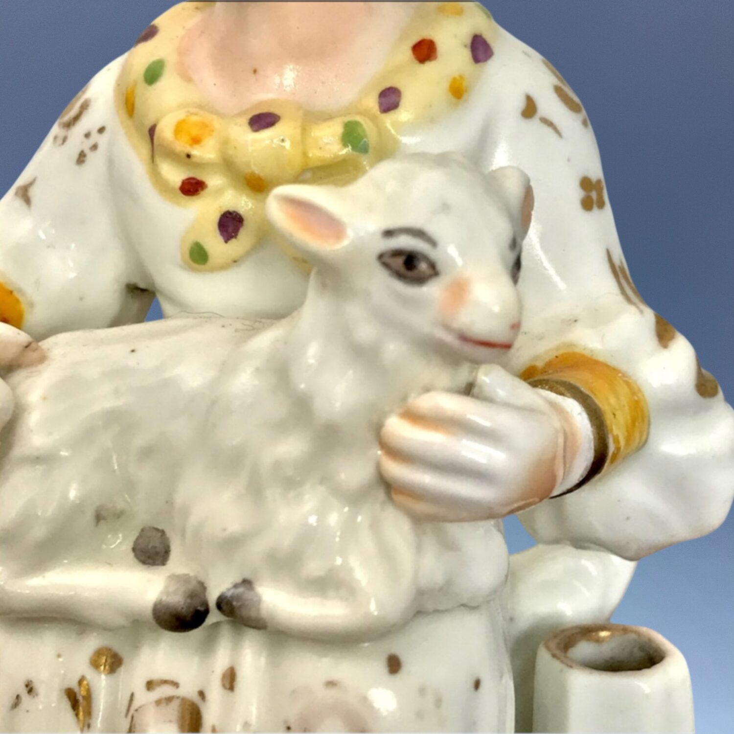 Condition: A little restoration to: Man’s neck, girl’s left hand and sheep’s ear only, small bruise on brim of man’s hat.