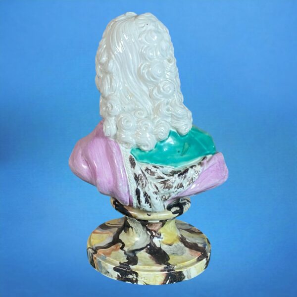 Early Staffordshire pottery bust of Voltaire, on a capstan shape circular socle with simulated marble effect.
