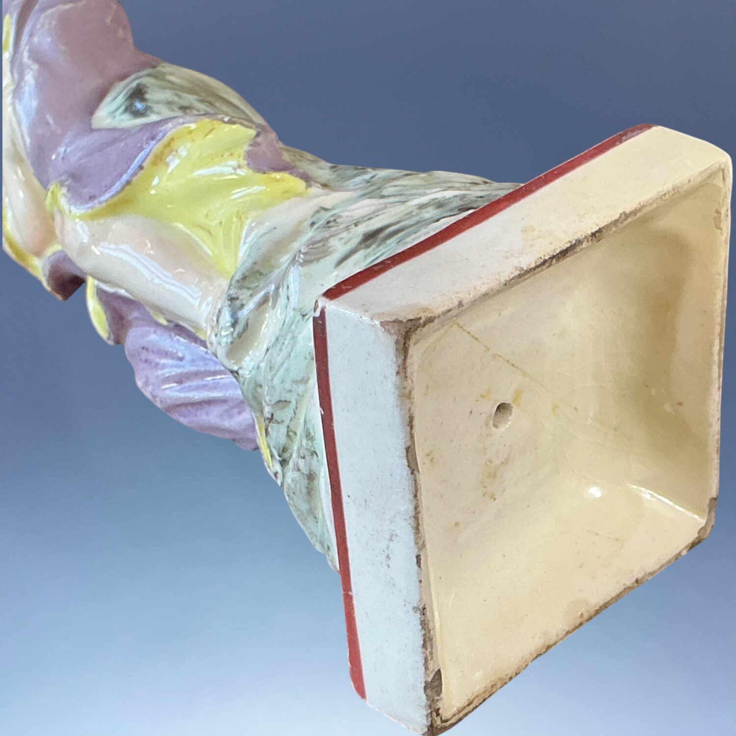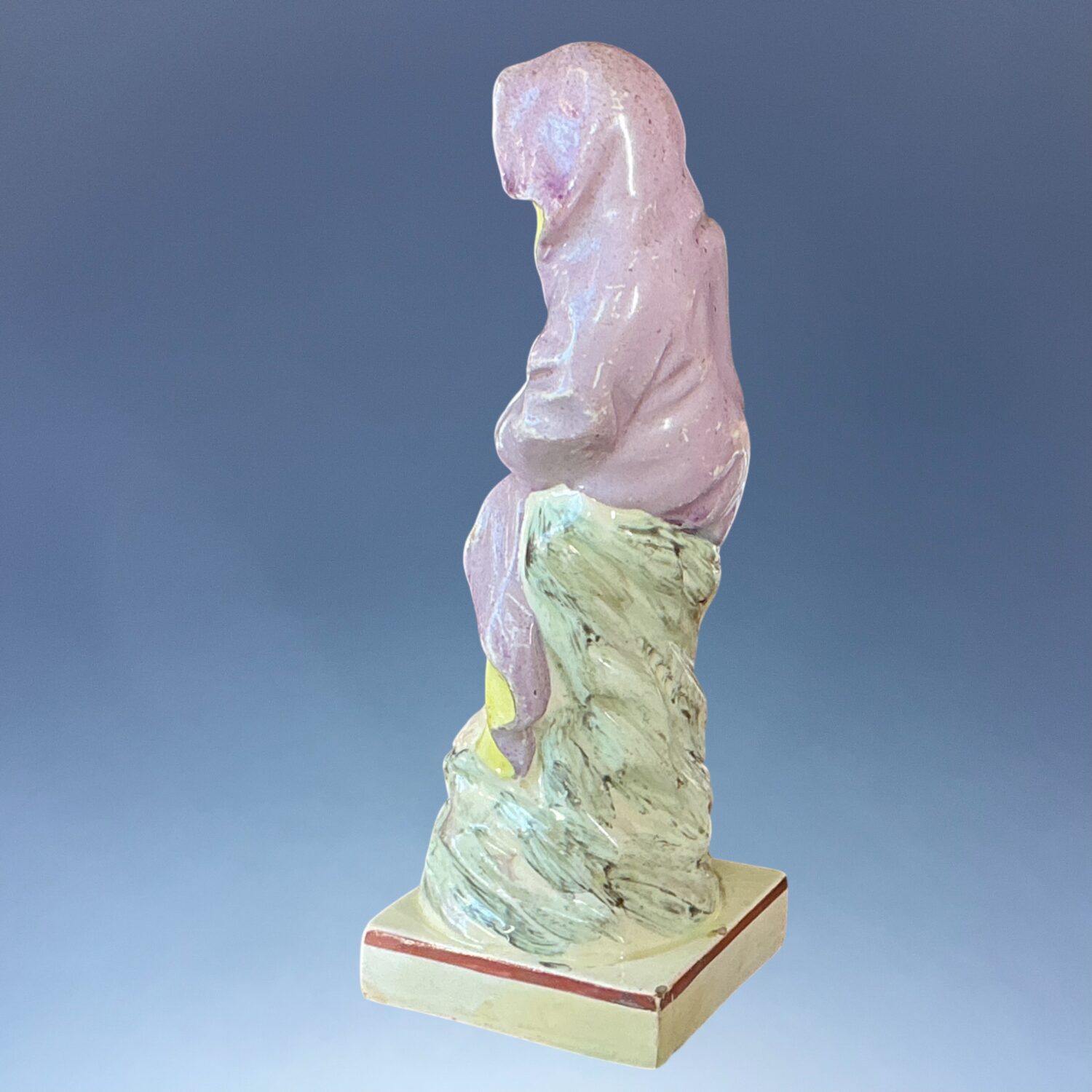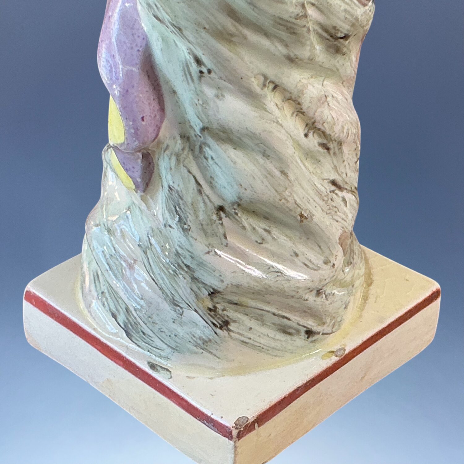 Early Staffordshire pottery small figure of a boy wearing a cloak, emblematic of Winter from a set of the four seasons.