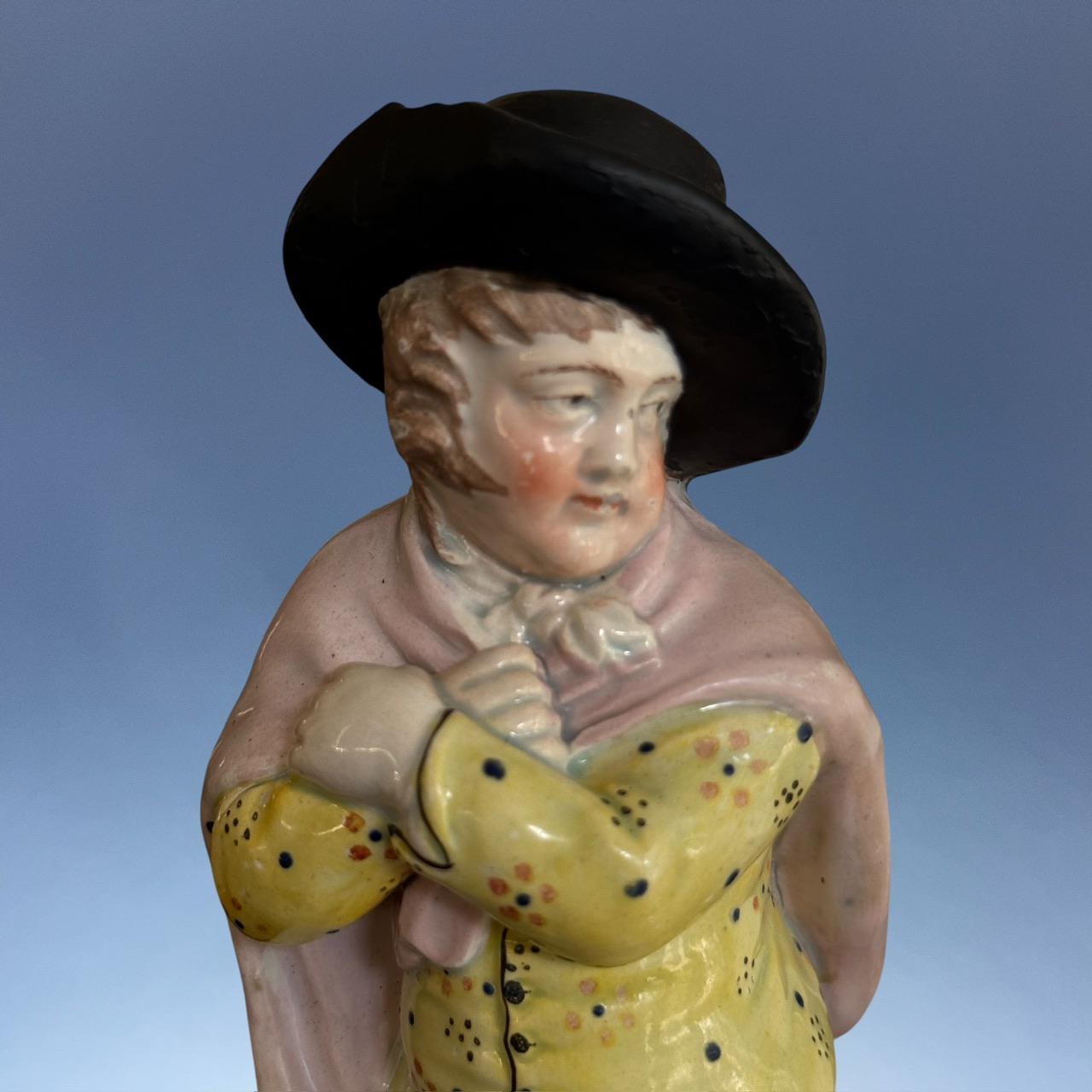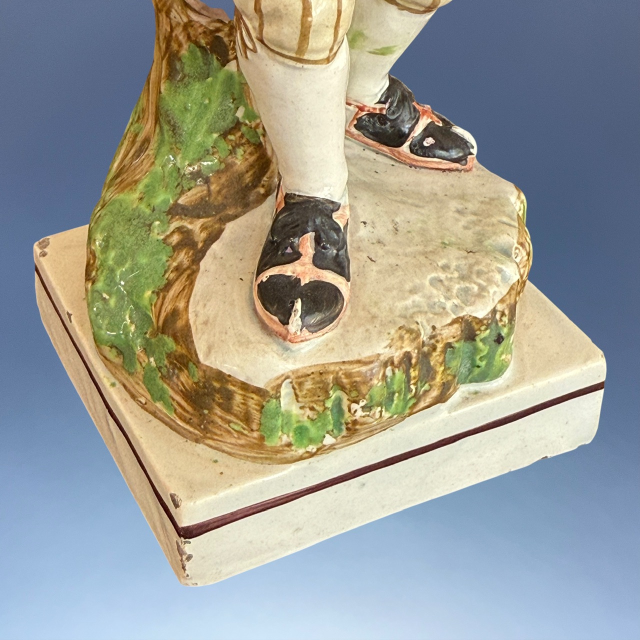 Early 19th century Staffordshire pottery figures of a boy skating, emblematic of Winter from a set of the four seasons.