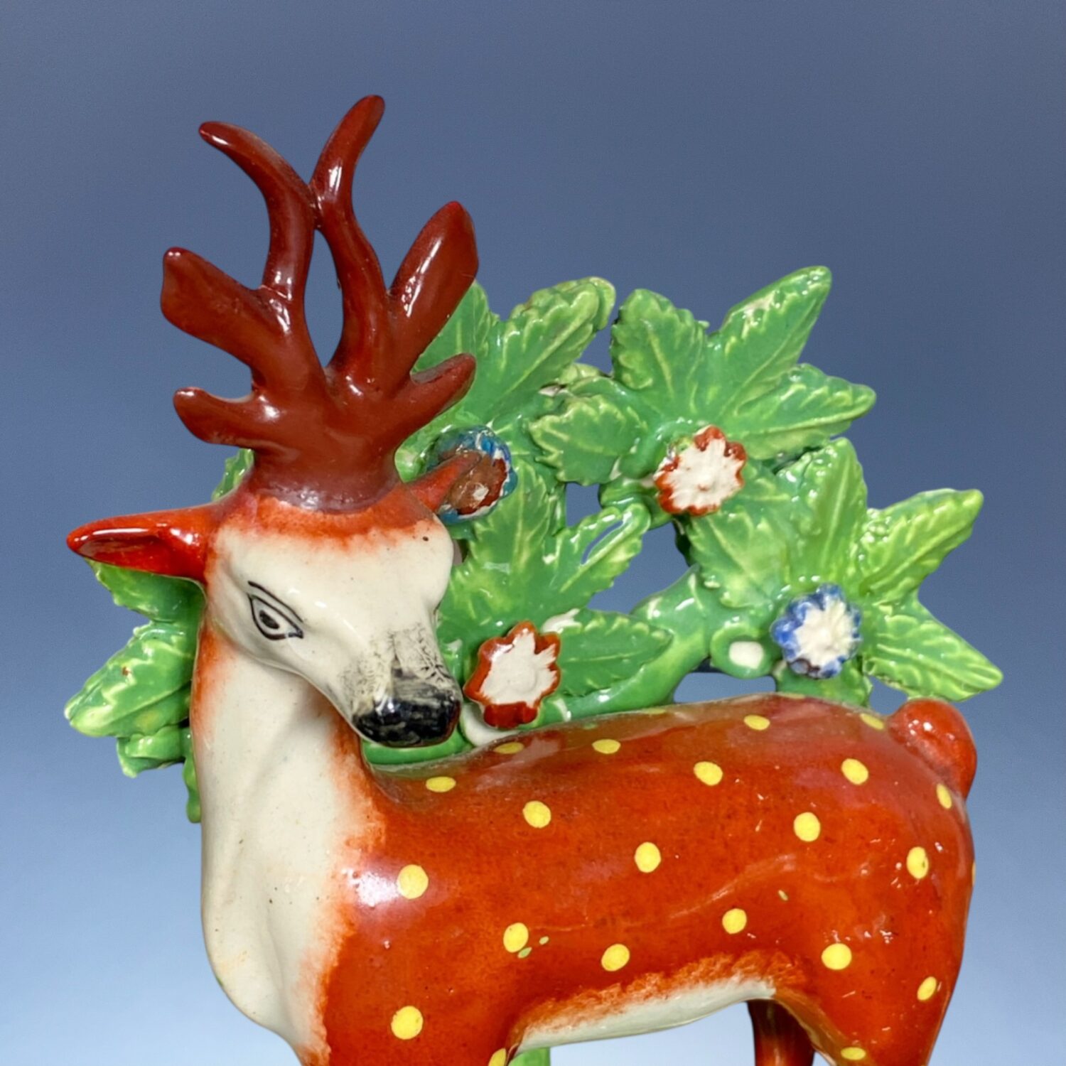 Condition : Some professional restoration to the antlers, left ear & a few leaves. Minor flaking on base touched in.